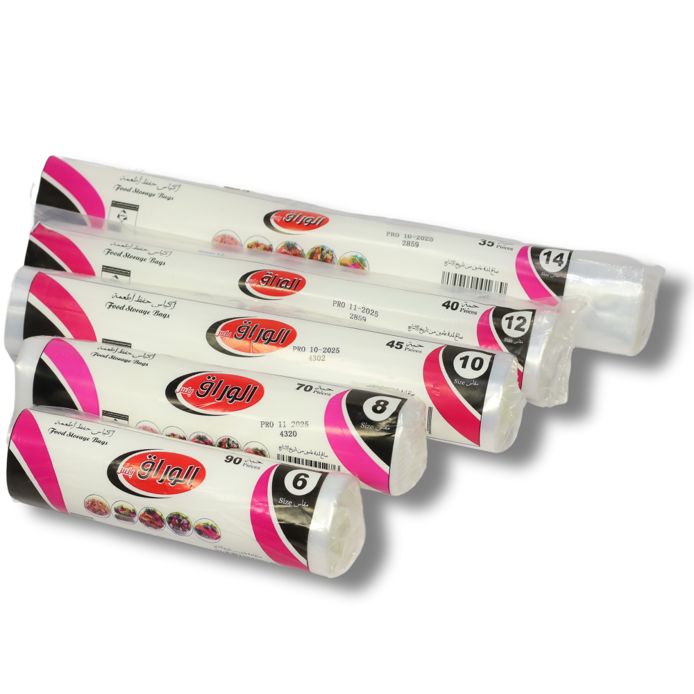 أكياس حفظ الطعام من الوراق بمقاسات متعددة (6، 8، 10، 12، و14 إنش) صُممت لتلبية مختلف احتياجات التخزين والتنظيم. يتوفر هذا المنتج أيضًا بالكرتونة. يرجى الاطلاع على المنتجات المرتبطة للاطلاع على تفاصيل الكرتونة وسعرها.