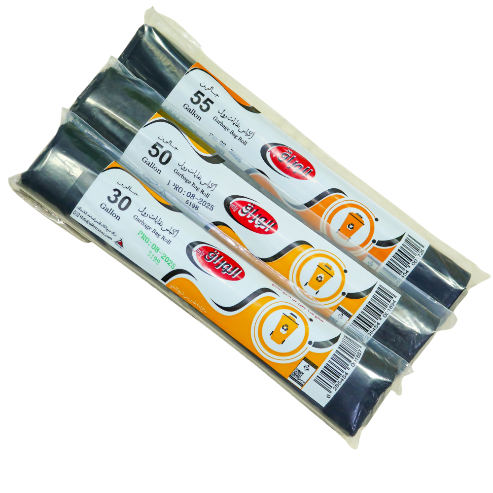 أكياس النفايات رول المخفضة من الوراق بلس هي الخيار الأمثل للأسر والمكاتب التي تبحث عن التوازن بين السعر والجودة في الاستخدام اليومي. يوجد مقاسات 55,50,30. هذه الكرتونة تحتوي على 30 عبوة من المنتج، ومصممة لتلبية احتياجات الشراء بالجملة أو الاستخدام التجاري، مع توفير أفضل قيمة مقابل السعر.