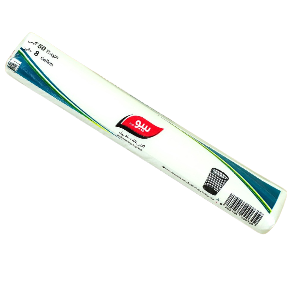 أكياس النفايات رول صغير من بيبو (٨ جالون – ٥٠ كيس) هي الحل المثالي للحفاظ على نظافة المنزل أو المكتب بطريقة عملية واقتصادية.