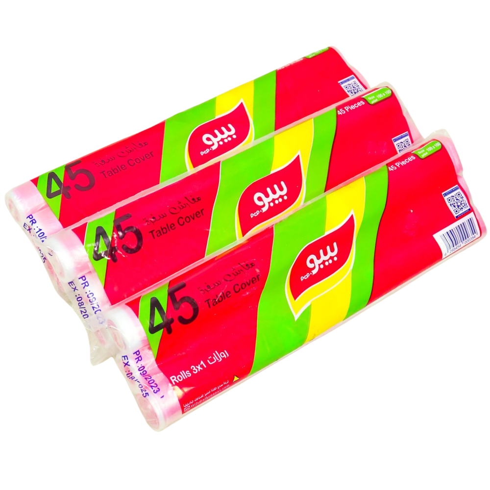The Bebo 45 Table Cover provides an affordable and practical solution for keeping your tables clean and tidy. Pack of 3 rolls of 45 colored tablecloths